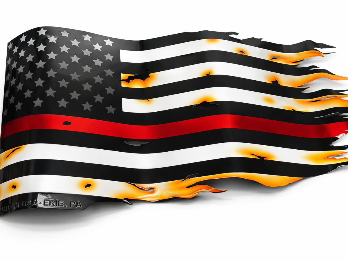 Metal tattered Ameican flag Thin Red Line
